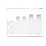 Plane travel pouch including 6 empty plastic bottles. (100ml, 50ml and 10ml)