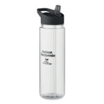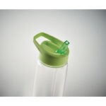 Drinking bottle in RPET and PP flip-top lid with straw. Capacity: 650ml. Not suitable for carbonated drinks.