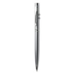 Multifunctional silver pen. Blue ink refill, white LED light, red laser pointer. Includes 3 cell batteries. Presented in a wooden box. Safety class II.