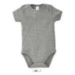 SOL’S BAMBINO, baby bodysuit, 100% combed ringspun cotton rib 1×1 180, collar, cuff and leg binding, cap sleeves, bottom popper fastening. About sizes matching, please refer to the size chart in the product documentation section.
