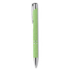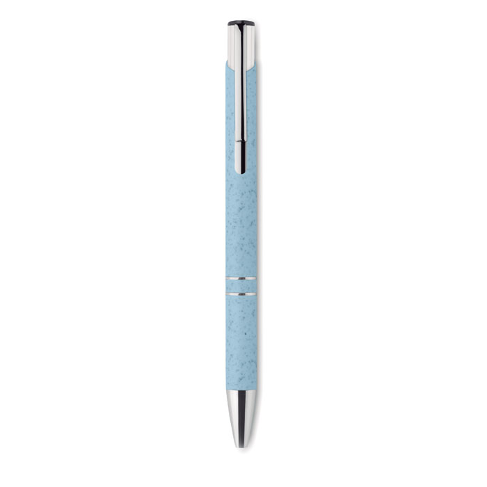 Push button ball pen in 50% wheat straw and 50% ABS material with silver fittings. Blue ink.