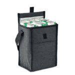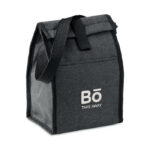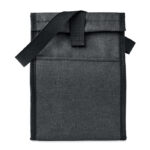 Insulated lunch bag in 600D RPET with front pocket. Capacity 3L. Insulation material: 2 mm PE foam with aluminium foil.