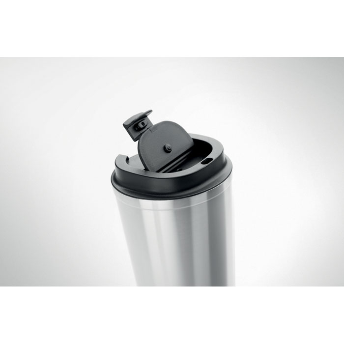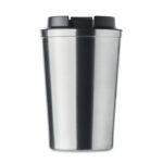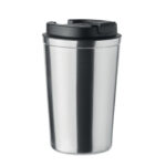 Double wall stainless steel tumbler with PP lid. Capacity: 350 ml. Leak free.