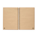 Bamboo cover notebook. Twin-wire ring bound, 140 lined kraft paper pages (70 sheets). Bamboo is a natural product, there may be slight variations in colour and size per item, which can affect the final decoration outcome.