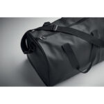 Duffle bag in soft PU with foam reinforcement to the base. One main compartment, zippered front pocket. 210D RPET polyester lining. 2 handles and one adjustable and detachable shoulder strap