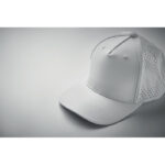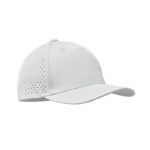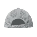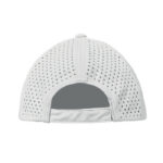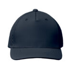 5 panel polyester performance cap with adjustable hook and loop closure and laser perforated holes with 2 stitched eyelets in matching colour. Item is quick dry, sweat and water repellent. 130 gr/m²