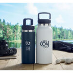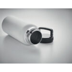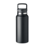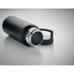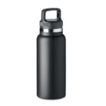 Double wall stainless steel vacuum insulated bottle with hook hanger on lid. Capacity: 970 ml.
