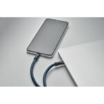 Cord lanyard with 60W charging and data transfer cable type-C to type-C in RPET with phone cord holder and key clip.