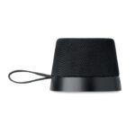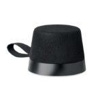 4.2 wireless speaker in ABS casing, RPET polyester fabric and loop. Magnet on back part supports stand functionality. Rechargeable Li-ION 300 mAh battery included. Output data: 3W, 4 Ohm and 5V. Playing time approx. 2hours.