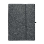 A4 conference folder in RPET felt. 100 lined recycled paper sheets notepad with elastic pen holder.