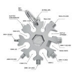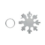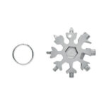 Multi-tool 17-in-1 stainless steel snowflake shaped. Optional metal ring included.
