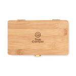 Handy 21 pieces tool set presented in a natural looking bamboo case. The perfect gift for a DIY handyman or amateur carpenter. This useful box has all the essential tools one should have in their home in case repairs are needed or small projects come up. It contains 3 screwdrivers, 10 bits in holder, 3 slotted sizes, 3 Torx sizes and 1 adapter, 4 sockets , 1pc cutter, 1 handle and 1 connector. Bamboo is a natural product, there may be slight variations in colour and size per item, which can affect the final decoration outcome. Box size 19 ,5×11,8×3 cm. FSC®-certified | FSC 100%, N5.7, FSC-C213206