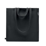 Recycled polycotton shopping or beach bag (70% recycled cotton, 30% recycled polyester) with short and long handles. It has a side zippered pocket. 380 gr/m².