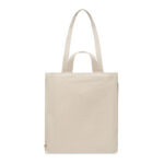 Recycled polycotton shopping or beach bag (70% recycled cotton, 30% recycled polyester) with short and long handles. It has a side zippered pocket. 380 gr/m².