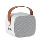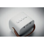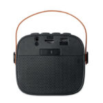 5.0 wireless speaker in recycled ABS with PU handle. 1 Rechargeable Li-ION 500 mAh battery included. Includes an SD card port and an AUX/ USB cable. Output data: 5W, 3 Ohm and 5V. Playing time approx. 4h.