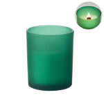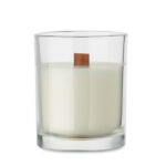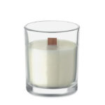 Vanilla fragranced plant based wax candle 80 gr in glass with wooden wick. Burning time 14 hours