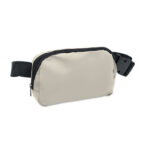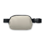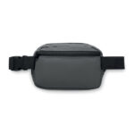 Waist bag or cross body bag in soft PU with 210D RPET polyester lining. 1 main zippered pocket, 1 back zippered pocket and mesh inside compartment.