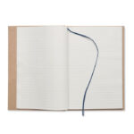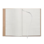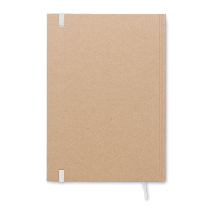 A5 märkmik, mille kate on kõva taaskasutatavast kartongist. 200 joonelist lehekülge ringlussevõetud paberist (100 lehte/80 g/m²). Elastne sulgemisrihm ja paelaga järjehoidja. Valmistatud ELis. Valikus on 5 värvi