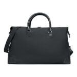 Weekend bag in 340 gr/m² canvas with recycled PU details. Lining is in RPET 210D. Strong adjustable and detachable straps included. Perfect hand luggage size.