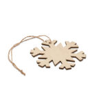 Wooden snowflake shaped decoration hanger with jute cord. MDF is made from natural materials, there may be slight variations in colour and size per item, which can affect the final decoration outcome.