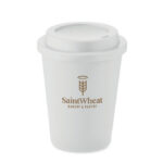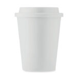 Double wall tumbler with drinking mouthpiece lid in PP. Capacity: 300 ml.