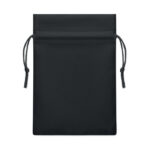 Small gift draw cord bag in RPET non-woven 80 gr/m². Size approx. 20×30 cm.
