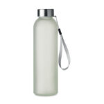 Glass bottle with special coating for sublimation. It has a stainless steel lid and hanging strap. Capacity: 500 ml.