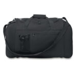 Sport or travelling bag in 600D polyester with front pocket and adjustable and detachable shoulder strap.