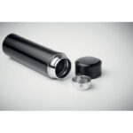 Double wall stainless steel insulating vacuum bottle. It has an LED touch thermometer incorporated in to the top of the lid and tea infuser inside. 1 replaceable CR2032 battery included. Leakproof. Capacity: 450 ml. Leak free.