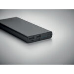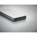 Power bank 10000 mAh in recycled aluminium. Capacity for smartphone use, output current DC5V/1A and DC5V/2A . Includes indicating light and USB cable with micro usb plug. Supports quick charging technology (18W). In/Output: Type-C. Power delivery (PD) support to charge the newest laptop MacPro®.