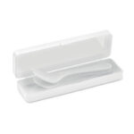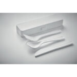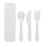 Re-usable PP portable cutlery set and case. Includes spoon, fork and knife.