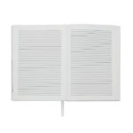 A5 daily diary notebook in 60% recycled post consumer polyester and 40% PU cover. 416 universal pages in 70gsm recycled paper (208 sheets). With matching colour polyester ribbon page marker.