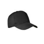 RPET 5 panel baseball cap in polyester 210 gm/m2 with silver steel buckle. 4 embroidered eyelets in matching colour. Size 7 1/4.
