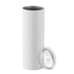 Double wall stainless steel tumbler and PS lid with mouthpiece with special coating for sublimation print. Capacity: 590 ml.