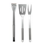 Set of 3 stainless steel barbecue tools in nonwoven pouch with zipper.