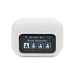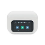 ABS True Wireless Stereo (TWS) 5.0 wireless stereo earbuds (30 mAh) with ANC/ENC and microphone and 230 mAh charging base. Touch screen control and display.