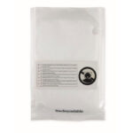 Foldable poncho with hood in biodegradable material and also packed biodegradable bag.
