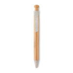Push button ball pen with bamboo barrel and wheat straw (50%) and ABS (50% ) fittings. Blue ink. Bamboo is a natural product, there may be slight variations in colour and size per item, which can affect the final decoration outcome. FSC®-certified | FSC 100%, N5.7, FSC-C213206