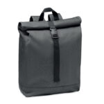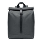 Backpack in 600D RPET 2 tone polyester with roll top closure.