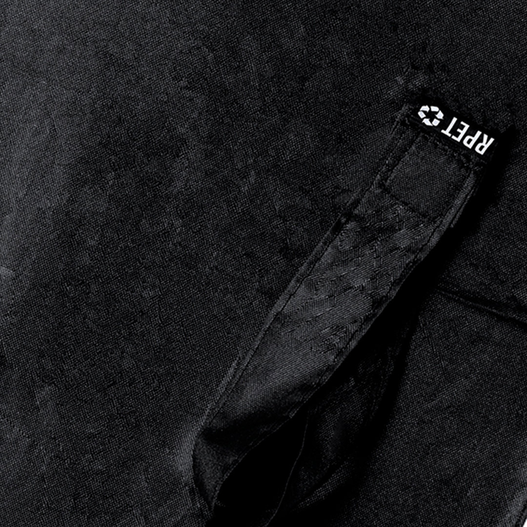 RPET kokkupandav vihmavari, 98 cm, valmistatud 190T RPET-pongee materjalist. Käsitsi avatav, tuulekindla mehhanismi ja klaaskiust ribidega. Ergonoomiline käepide metallist kanderõnga ja takjapaelaga kinnitusega, samast materjalist vutlar