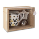Komplekt: kruus, teefilter ja mini alus. Pakitud kartongkarpi PVC-voodriga ja paelaga