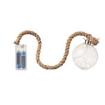8 cm läbimõõduga klaasist jõulupall, 8 LED-tule ja džuutnööriga. 2 AA patareid ei kuulu komplekti