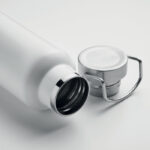 Taaskasutatud roostevabast terasest topeltseinaga vaakum-isolatsiooniga joogipudel, kaanel on kandesang ja korgist detailipõhi. Lekkevaba. Mahutavus: 500 ml.