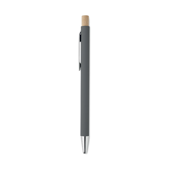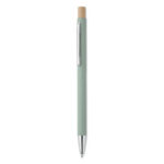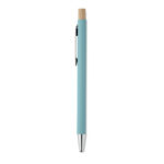 Taaskasutatud alumiiniumist kuulpliiats. Hõbedane ots ja klamber. Sinine tint