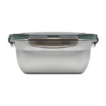 Taaskasutatud roostevabast terasest lõunasöögikarp taaskasutatud PP kaanega ja 4 küljekinnitusega. Kaasas vahesein toidu eraldamiseks. Mahutavus: 1500 ml