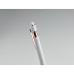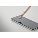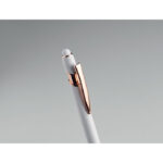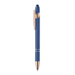 Taaskasutatud alumiiniumist pastapliiats, mille on  roosa kullaga detailid. Sinine tint