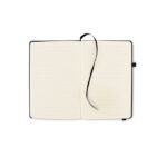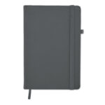 A5 märkmik ringlussevõetud PU-kattega. 192 joontega lehekülge (96 lehte). Sobiv elastne sulgemisrihm ja pliiatsi hoidja ning ning paelaga järjehoidja