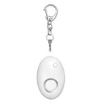 Mini personal alarm in ABS which activates when the pin is pulled it is attached to a key ring. It also has 1 white LED light. 3 AG13 batteries included. Volume alarm:90-100 decibels.