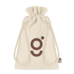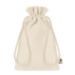Small gift draw cord in organic cotton. Size approx. 14×22 cm. 105 gr/m².