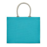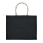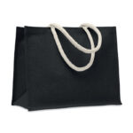 Jute laminated shopping or beach bag with cotton handle. Short handles. This product is OEKO-TEX® STANDARD 100 certified.